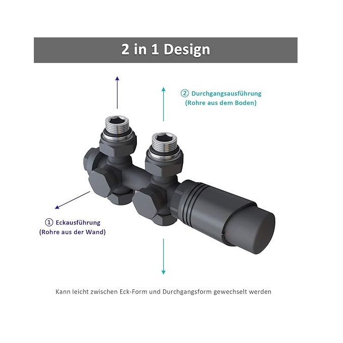 ELEGANT designradiator verticaal dubbel middenaansluiting 1600x354mm 1104W antraciet GRE1635AD