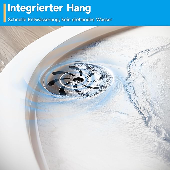 Geïntegreerde kanteling: De afvoer bevindt zich in het midden van de ellips. Het water loopt snel weg, er blijft geen water in de douchebak achter.